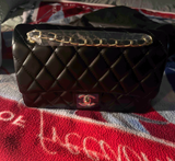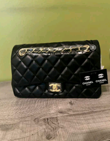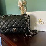 Immerse yourself in luxury with the Chanel Lambskin Flap Bag. Made with 100% genuine black leather, this bag exudes sophistication and style. The perfect accessory for any outfit, it's a timeless investment piece that will elevate your wardrobe. Treat yourself to the elegance of Chanel.