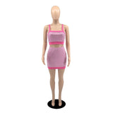 Houndstooth Plaid Two Piece Outfits 2022 Fashion Women Summer Clothes Crop Tops and Mini Skirts