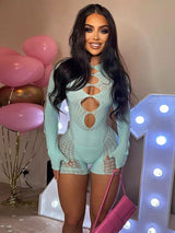 Baby Blue Sexy Transparent Mesh Bodycon Slim Playsuit