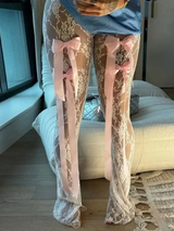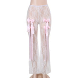 Bandage High Waist Lace Perspective Bow Pants For Women 2024 Spring New Spicy Ladies