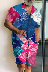 Men Sets 3d Print Patchwork Lapel Short Sleeve Casual Shirt Beach Shorts Summer Streetwear Vacation Hawaiian Suits Men Clothing