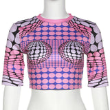 Polka Dot Print Two Piece Set Women Hipster Sexy O-Neck Half Sleeve Body-Shaping