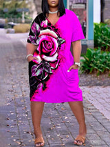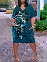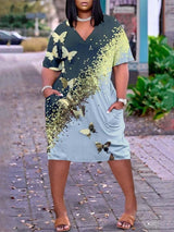 Hem Print Sexy V-neck Beach Dress Plus-size dress Comfortable
