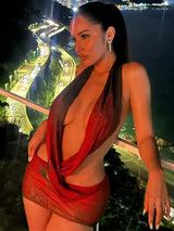 Hugcitar Mesh Halter Backless Floral Design Dress