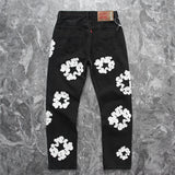 The Denim Tears x Levi?s 501 Cotton Wreath Jeans were exclusively released at Dover Street Market in 2023 as part of the Rhinestone Collection. The Rhinestone Collection consists of nine Denim Tears pieces, ranging from sweatshirts to caps, that feature meticulous rhinestone detailing. Made from 100% cotton, these jeans feature the iconic Denim Tears Cotton Wreath.